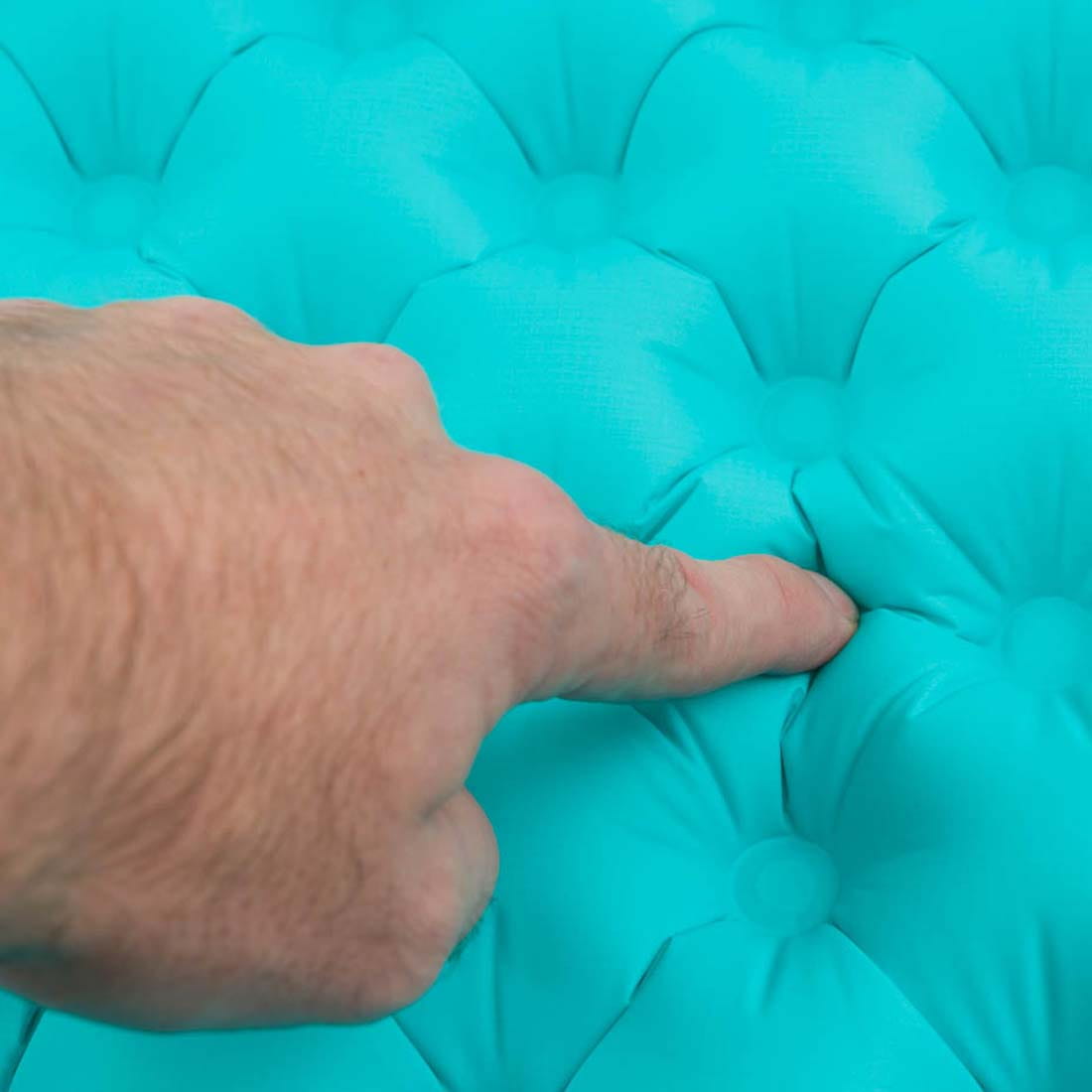 Tłoczona powłoka jest znacznie trwalsza, zwarta i umożliwia zastosowanie formuły TPU. Jest to znacznie skuteczniejsza technika od powszechnie stosowanej na rynku laminacji, która jest mniej odporna na rozwarstwienie. Aby zapobiec rozwojowi grzybów i pleśni wewnątrz materaca powłokę TPU wzbogaciliśmy dodatkową warstwą antybakteryjną. Dzięki temu możesz w bezpieczny i higieniczny sposób nadmuchać materac za pośrednictwem jednego z dwóch dostępnych wentyli.