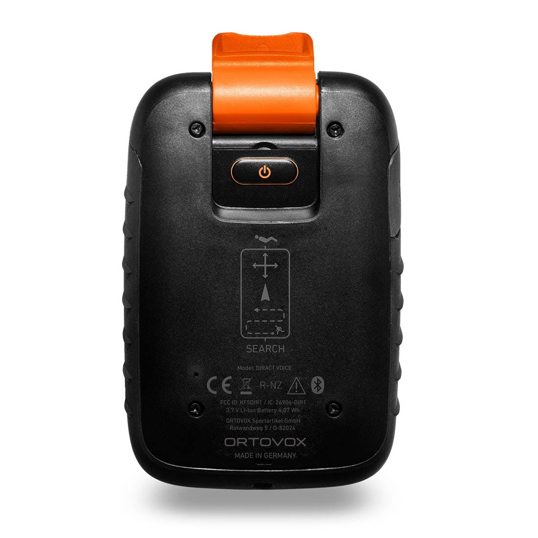 Ortovox DIRACT VOICE posiada nawigację głosową, która poprzez jasne instrukcje udzielane na każdym etapie poszukiwań umożliwia zaoszczędzenie cennych dla ludzkiego życia sekund. Użytkownik może wybrać z pośród kilku dostępnych języków: DE, EN, FR, IT, ES, NOR, SV, CZ, NL. Wyposażony został w trzy anteny i system Smart-Antenna-Technology™ analizujący lokalizację urządzenia i automatycznie przełączający na będącą w najlepszym położeniu, co zwiększa zasięg sygnału. Po uruchomieniu wykonuje autotest i wyświetla poziom baterii, jeżeli jest niższy niż 40%, urządzenie należy jak najszybciej naładować. Włączony automatycznie ustawia się w trybie nadawania, tryb szukania aktywowany jest za pomocą dużego przełącznika umieszczonego w górnej części obudowy. Maksymalna szerokość pasa poszukiwań wynosi 50 metrów (ustalona wg ICAR: AVA REC 0007), duży wyświetlacz za pomocą strzałki wskazuje kierunek w jakim trzeba podążać oraz odległość od nadajnika osoby poszukiwanej. W wypadku wykrycia kilku osób pod lawiną w dolnej części wyświetlacza pojawiają się wszystkie rozpoznane nadajniki, a urządzenie poprowadzi do najbliższego z nich. Po odszukaniu nadajnika można go oznakować za pomocą widocznego na ekranie markera (będzie widoczny jako chorągiewka) i przejść do poszukiwania kolejnej ofiary, w ten sposób można oznakować cztery zasypane osoby. Detektor posiada zabezpieczenie na wypadek zejścia lawiny wtórnej i przysypania ratownika, wyposażony jest w czujnik ruchu który po 2 minutach pozostania w bezruchu przełącza się automatycznie z trybu wyszukiwania na tryb nadawania. Gumowana obudowa zapewnia ochronę, poprawia chwyt i wygodę obsługę w grubych rękawicach. Wyposażony jest w pokrowiec z "szelkami" umożliwiający wygodne przenoszenie i szybki dostęp do detektora. Dodatkowo na szelkach umieszczono reflektor RECCO® i pętle z karabinkiem, zabezpieczającą detektor przed przypadkowym upuszczeniem w trakcie poszukiwań.