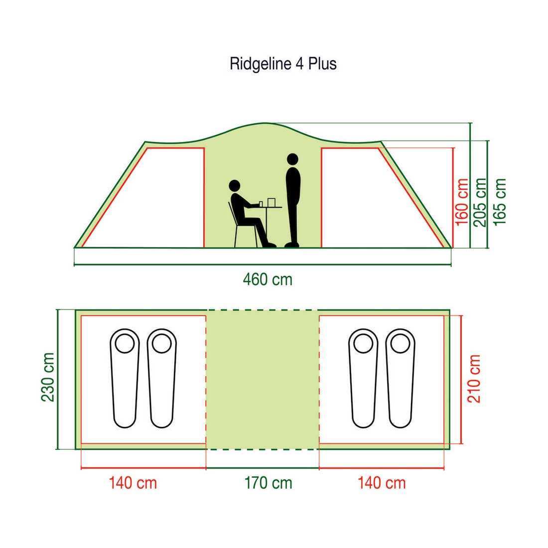 Konstrukcja tego namiotu zapewnia skuteczną ochronę przed trudniejszymi czynnikami i może z łatwością wytrzymać opady deszczu dzięki hydrostatycznej wodoodporności 3000. Namiot trzymają pałąki wykonane z włókna szklanego, które oferują odpowiednią wytrzymałość. Pojemne dwie sypialnie pomieszczą w sumie 4 osoby. Składanie oraz rozkładanie namiotu jest łatwe. Namiot posiada wydajną wentylację. W wersji Plus podwójne wejście ułatwia wentylację oraz wchodzenie i wychodzenie z namiotu. Namiot posiada obszerny przedsionek z dwoma wejściami, po bokach którego umieszczono 2 sypialnie. Łatwy dostęp do wszystkich części zwiększa komfort użytkowania.