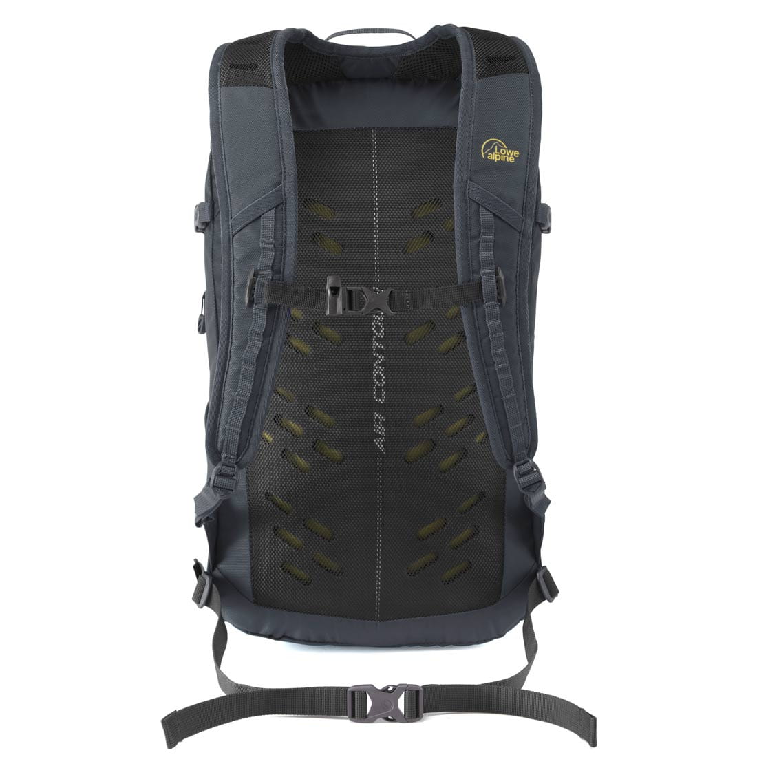 Lowe Alpine Edge 22 wyposażono w dostosowany specjalnie do plecaków miejskich system nośny Air Contour™. Tylny panel składa się z elementów wykonanych z perforowanej pianki pokrytej siatkowym materiałem. Anatomiczne szelki naramienne z materiału Airmesh zapewniają dobre dopasowanie i komfort. Odpinany pasek biodrowy z taśmy zapewniaj dobrą stabilizację plecaka podczas jazdy na rowerze, czy szybszego marszu lub biegu. Pasek piersiowy posiada regulację i gwizdek.