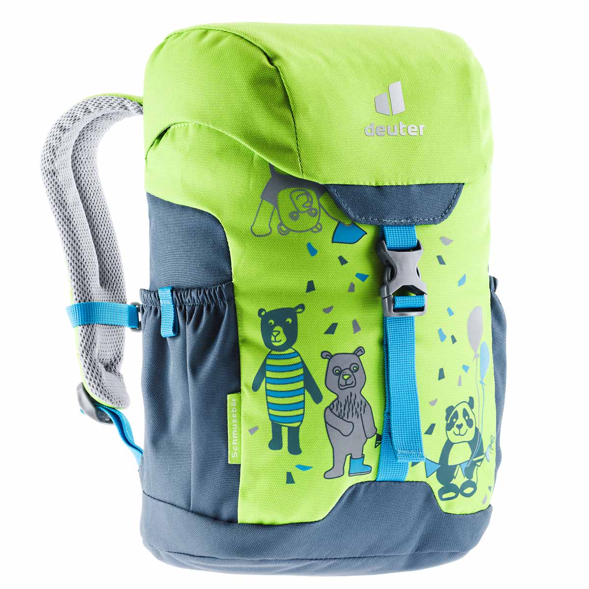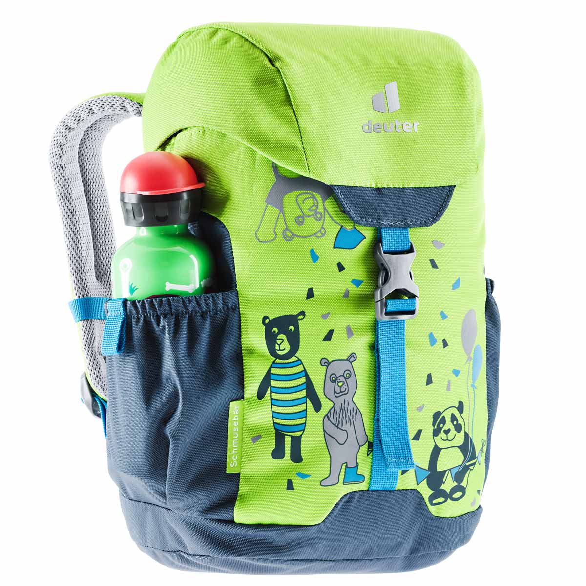 Deuter Schmusebär to profesjonalny plecak dla małego podróżnika. Skonstruowany tak by każdy maluch w wieku od 3 lat mógł samodzielnie z niego korzystać. Plecak posiada zapięcie z klamrą skonstruowaną specjalnie z myślą o dzieciach. Komora główna zaciągana jest linką i zapinana z zewnątrz za pomocą klamerki. Po wewnętrznej stronie klapy zamykającej komorę główną, znajduje się specjalne miejsce służące do umieszczenia danych dziecka. Dodatkowo plecaczek posiada zapinaną na suwak kieszeń na klapie. Po bokach plecaka umieszczono dwie dodatkowe kieszonki idealne na bidon i drobne akcesoria. Pasy nośne plecaczka, wyprofilowano i uszyto z materiału nie powodującego obtarć. Tył został wyprofilowany i wypełniony miękką oddychająca pianką, która również zabezpiecza plecy dziecka podczas noszenia kanciastych przedmiotów. Elementy odblaskowe na froncie i szelkach plecaczka poprawiają bezpieczeństwo w słabych warunkach oświetleniowych.