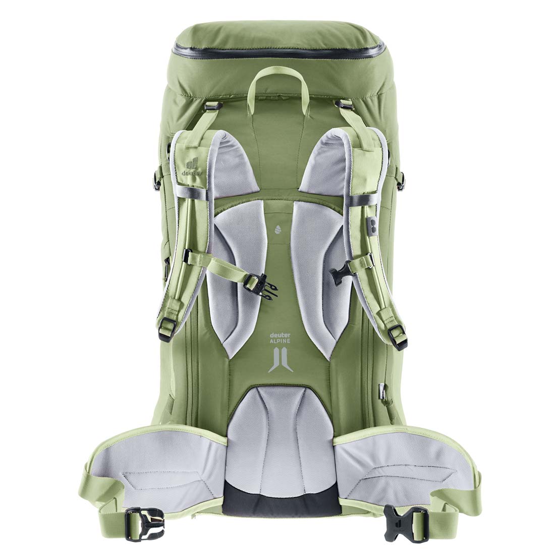 Deuter Freescape Pro 38+ SL wyposażono w system nośny Deuter Alpine Back System, wykorzystujący jako usztywnienie lekką ramę Delrin® w kształcie litery U, takie rozwiązanie zapewnia równomierny rozkład obciążenia i stabilną pozycję plecaka, przy jednoczesnym zachowaniu wysokiej elastyczności całej konstrukcji. Panel tylny składa się z poduszek umieszczonych w okolicach łopatek i lędźwiowego odcinka kręgosłupa, które zostały wyściełane miękkim materiałem, znacząco zwiększającym komfort użytkowania, cechującym się jednocześnie wysoką oddychalnością, która pozwoli utrzymać komfortowy klimat przy plecach. Tego samego materiału użyto na anatomicznie profilowanych szelkach uprzęży i wypinanym pasie biodrowym.