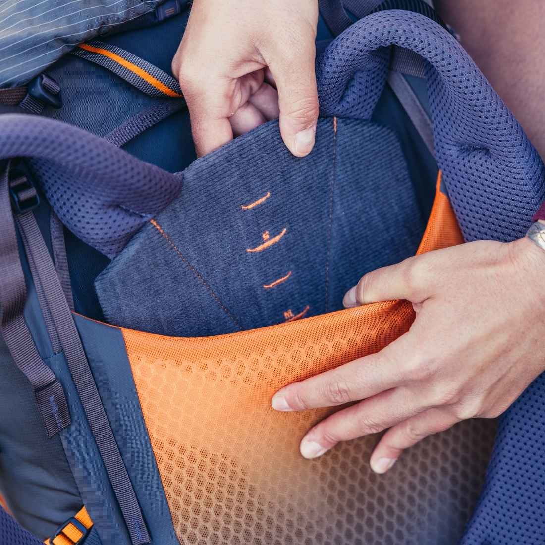 Nowinką w plecaku Gregory Maven 48 XS/S jest specjalna kieszeń na jednej z szelek. Została ona zaprojektowana z myślą o umieszczeniu w niej komunikatora Garmin inReach®. Może jednak posłużyć jako kieszeń na okulary przeciwsłoneczne lub przekąskę. Na szelkach znajduje się także regulowany pas piersiowy z gwizdkiem i zaczepem ustnika od bukłaka.