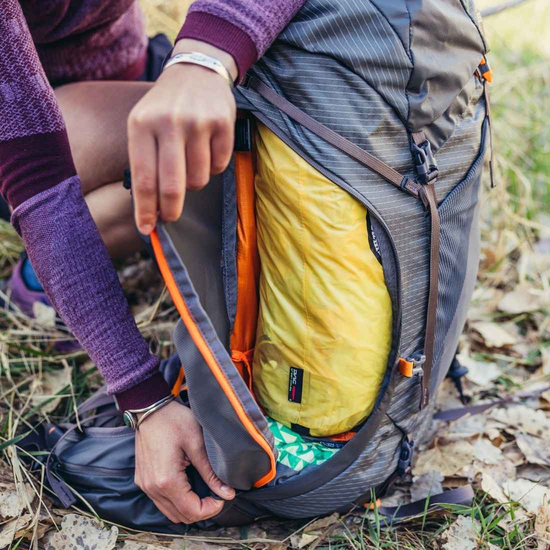 Plecak Gregory Maven 48 XS/S składa się z jednej, obszernej komory. Dzięki odpinanej przeponie można ją jednak podzielić na dwie części. Dostęp do wnętrza obydwu części zapewnia wygodna klapa ze ściągaczem oraz zamek błyskawiczny znajdujący się u dołu plecaka. Plecak posiada również dodatkowy dostęp do komory głównej, który znajduje się z boku plecaka. Zabezpieczony jest on zamkiem błyskawicznym. Wewnątrz komory głównej znajduje się nieodzowna kieszeń na bukłak z zaczepem SpeedClip. Zaczep ten jest kompatybilny ze wszystkimi bukłakami marki Gregory Hydro.