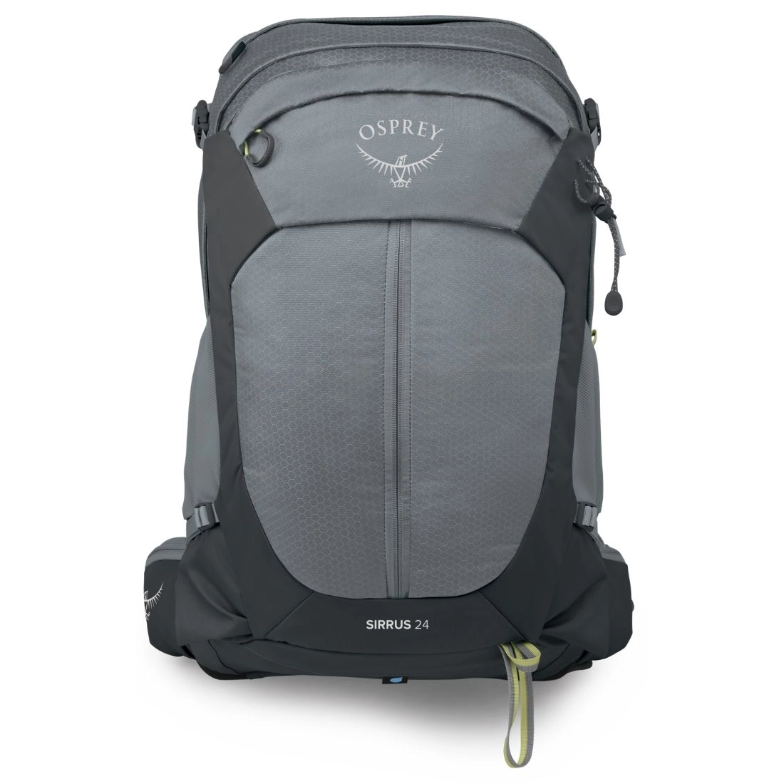 Osprey Sirrus 24 to jednokomorowa konstrukcja o pojemności 24 litrów, dzięki czemu pozwala spakować całe wyposażenie niezbędne podczas krótszych wypadów w teren. Dostęp do komory głównej zabezpieczony jest za pomocą szerokiego zamka błyskawicznego, co znacznie ułatwia zarówno pakowanie i wyjmowanie przenoszonego wyposażenia. W jej wnętrzu znajduje się osobna kieszeń dedykowana na bukłak z wodą wyposażona w wieszak i wyprowadzenie na rurkę. Od frontu znajduje się pojemna kieszeń zabezpieczona pionowym suwakiem, nad nią umieszczono mniejszą kieszonkę która jest w stanie pomieścić telefon. Dodatkowa kieszonka w górnej części plecaka pozwala bezpiecznie przenosić najpotrzebniejsze drobiazgi np. portfel i klucze. Dwie kieszonki na pasie biodrowym przeznaczone są na drobne akcesoria podręczne, natomiast dwie boczne kieszenie elastyczne pomieszczą dodatkowe bidony. Do plecaka można przytroczyć czekan, został wyposażony również opatentowany system szybkiego mocowania kijków trekkingowych Stow–on–the–Go™. Cztery boczne pasy kompresyjne umożliwiają dostosowanie objętości do przenoszonego wyposażenia i zapobiegają jego niekontrolowanemu przemieszczaniu się wewnątrz plecaka. Dołączony pokrowiec przeciwdeszczowy chroni plecak i jego zawartość przed niekorzystnymi warunkami pogodowymi.