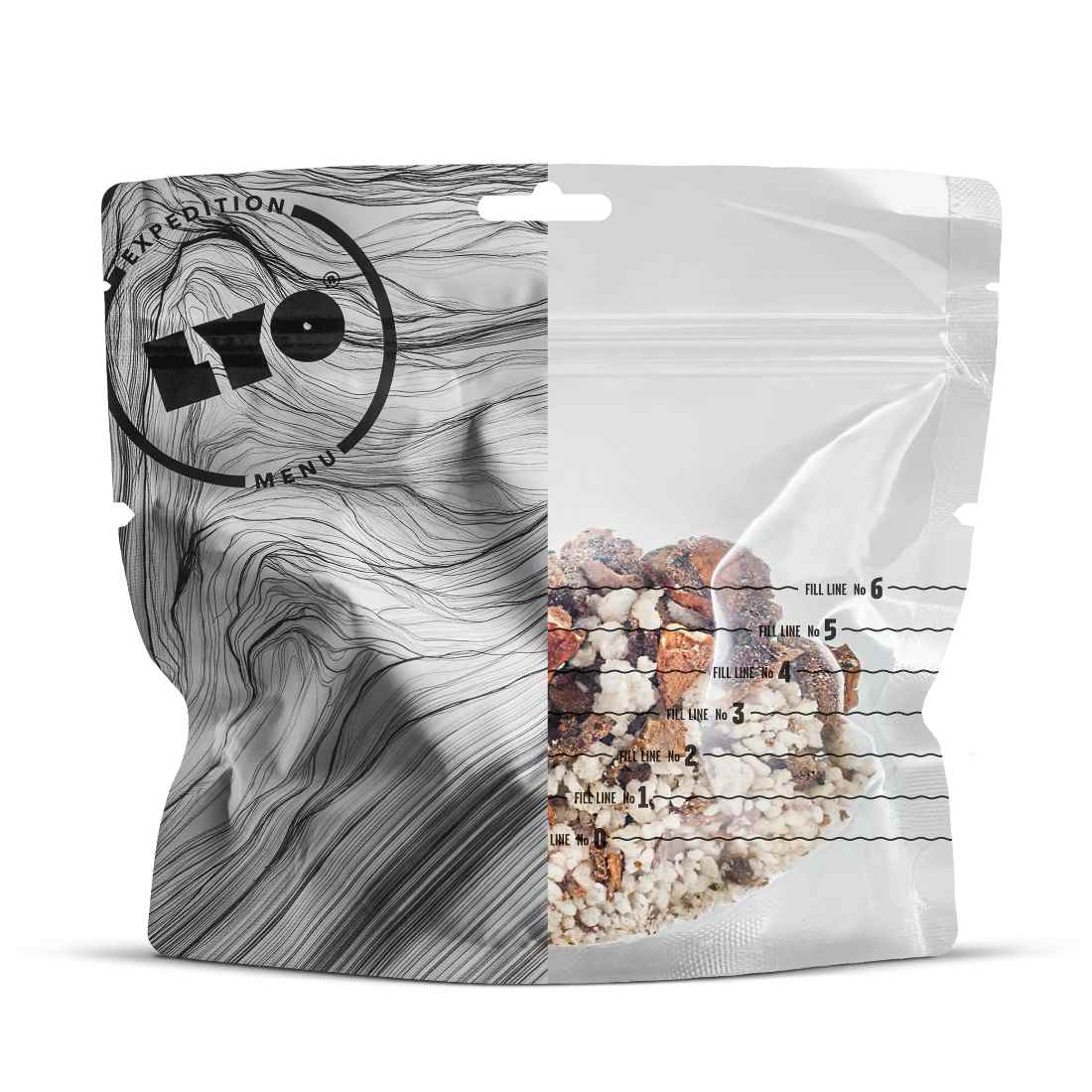 - Jest niezwykle łatwa do przygotowania. Wystarczy nieco wrzątku. Nie potrzebujesz również dodatkowych naczyń. Opakowanie żywności liofizowanej Lyofood zostało zaprojektowane w taki sposób, że komfortowo może posłużyć jako miska.