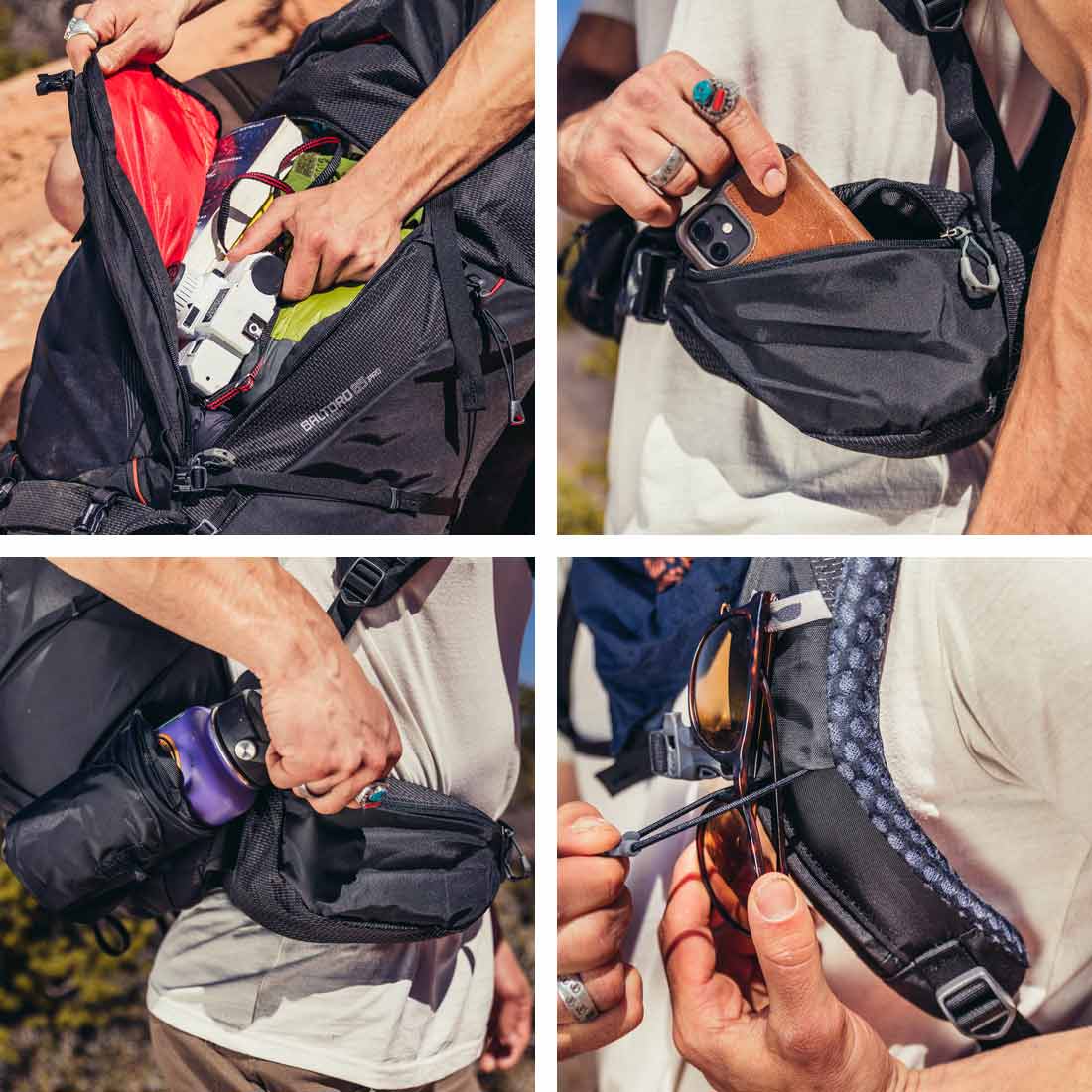 Gregory Baltoro 85 PRO posiada dwie komory z możliwością ich połączenia, oraz trzy sposoby dostępu do spakowanego w plecaku wyposażenia. Pojemna komora górna wyposażona została w osobną kieszeń na bukłak, dostęp do jej wnętrza może być realizowany na dwa sposoby, klasycznie od góry poprzez klapę lub dodatkowe, zabezpieczone suwakiem dojście umieszczone od frontu plecaka. Dolna komora zamykana zamkiem błyskawicznym jest odpowiedniej wielkości aby pomieścić śpiwór. Liczne kieszenie i punkty służące do troczenia umożliwiają odpowiednie odpowiednie rozmieszczenie akcesoriów. Od frontu plecak znajdują się obszerna mokra kieszeń i dwie pojemne kieszenie zabezpieczone zamkami błyskawicznymi. Po bokach umieszczono z jednej strony kieszeń elastyczną, a z drugiej chowany uchwyt na bidon i dwie szlufki do troczenia. Dodatkowe dwie kieszenie na pasie biodrowym zapewniają miejsce na drobne akcesoria podręczne. Posiada trzy kieszenie w klapie, dwie zewnętrzne i jedną wewnętrzną, w niej umieszczono pokrowiec przeciwdeszczowy. Znajdujące się w dolnej części plecaka paski z klamrami umożliwiają troczenie dodatkowych akcesoriów, np. karimaty. Plecak wyposażono w pętle do mocowania czekanów i kijów trekingowych.
