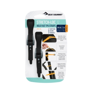 Sea To Summit Stretch-Loc 12 to zestaw dwóch pasów mocujących wykonanych z wytrzymałego i elastycznego termoutwardzalnego poliuretanu (TPU). Materiał ten nie tylko zapewnia trwałość pasów mocujących, ale też zapobiega ich ślizganiu się po zabezpieczanej powierzchni.