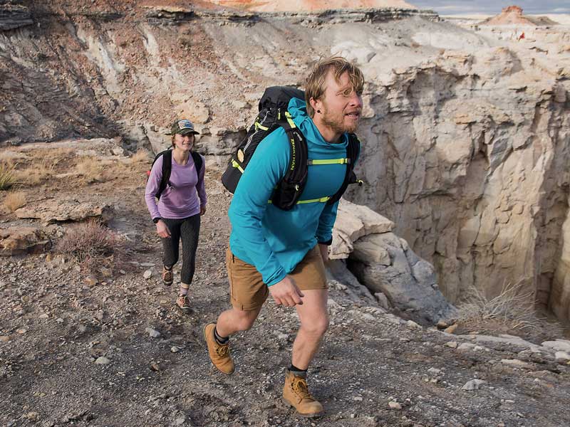 Trekking może być trudny dla Twoich stóp, zwłaszcza jeśli nie jesteś przyzwyczajony do chodzenia na długich dystansach lub noszenia dużych ciężarów na plecach. Jesteś bardziej narażony na powstanie pęcherzy, jeśli nie nosisz odpowiedniego obuwia lub skarpet, które są dobrze dopasowane i chronią pięty przed ocieraniem się o wkładki butów. Dobra para skarpet trekkingowych powinna być wystarczająco gruba, aby nie ocierała się o piętę buta podczas chodzenia, ale jednocześnie wystarczająco cienka, aby mogła prawidłowo oddychać, gdy na zewnątrz jest ciepło.