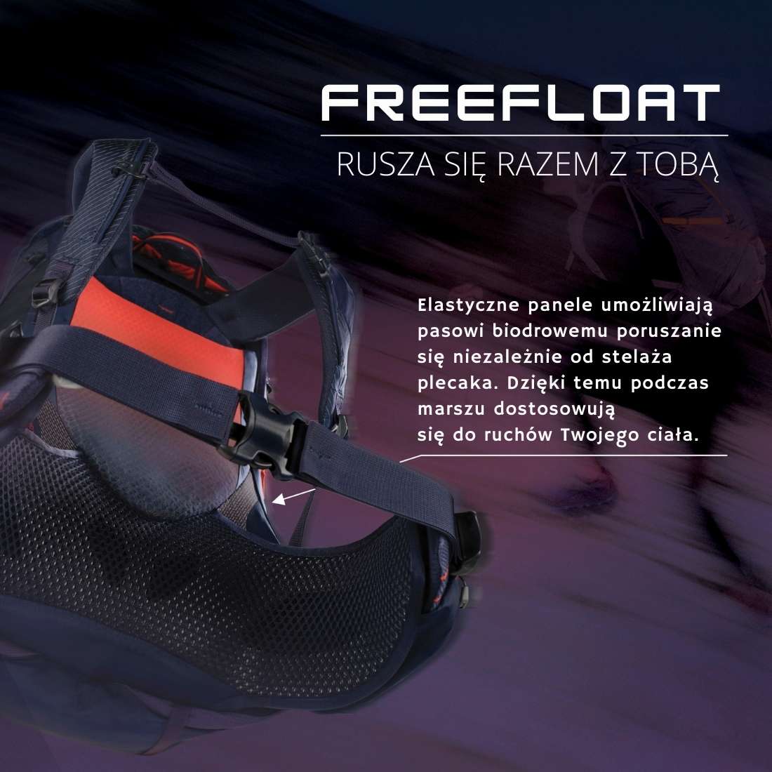 Plecak Gregory Maven 38 S/M wyposażono w ulepszony hybrydowy system nośny FreeFloat. System ten jest połączeniem wentylacji, jaką oferują plecaki z siatką oraz stabilności znanej z klasycznych systemów nośnych. System FreeFloat jako elementu usztywniającego wykorzystuje ultralekką ramę wykonaną ze stopu metali i włókna szklanego. Zapewnia ona odpowiednią elastyczność, nie ogranicza ruchów i przenosi obciążenie na pas biodrowy. System FreeFloat umożliwia płynną regulację długości pleców (w zakresie od 40,6 do 50,8 cm). To rozwiązanie umożliwia optymalne dopasowanie plecaka zarówno do wzrostu, jak i do sylwetki użytkowniczki. Panel tylny, część lędźwiowa, szelki uprzęży oraz pas biodrowy zostały wykonane z perforowanej pianki EVA i pokryte przepuszczalną siatką. Takie połączenie zapewnia wysoki poziom cyrkulacji powietrza oraz szybkie odparowanie wilgoci, co znacznie poprawia komfort użytkownika.