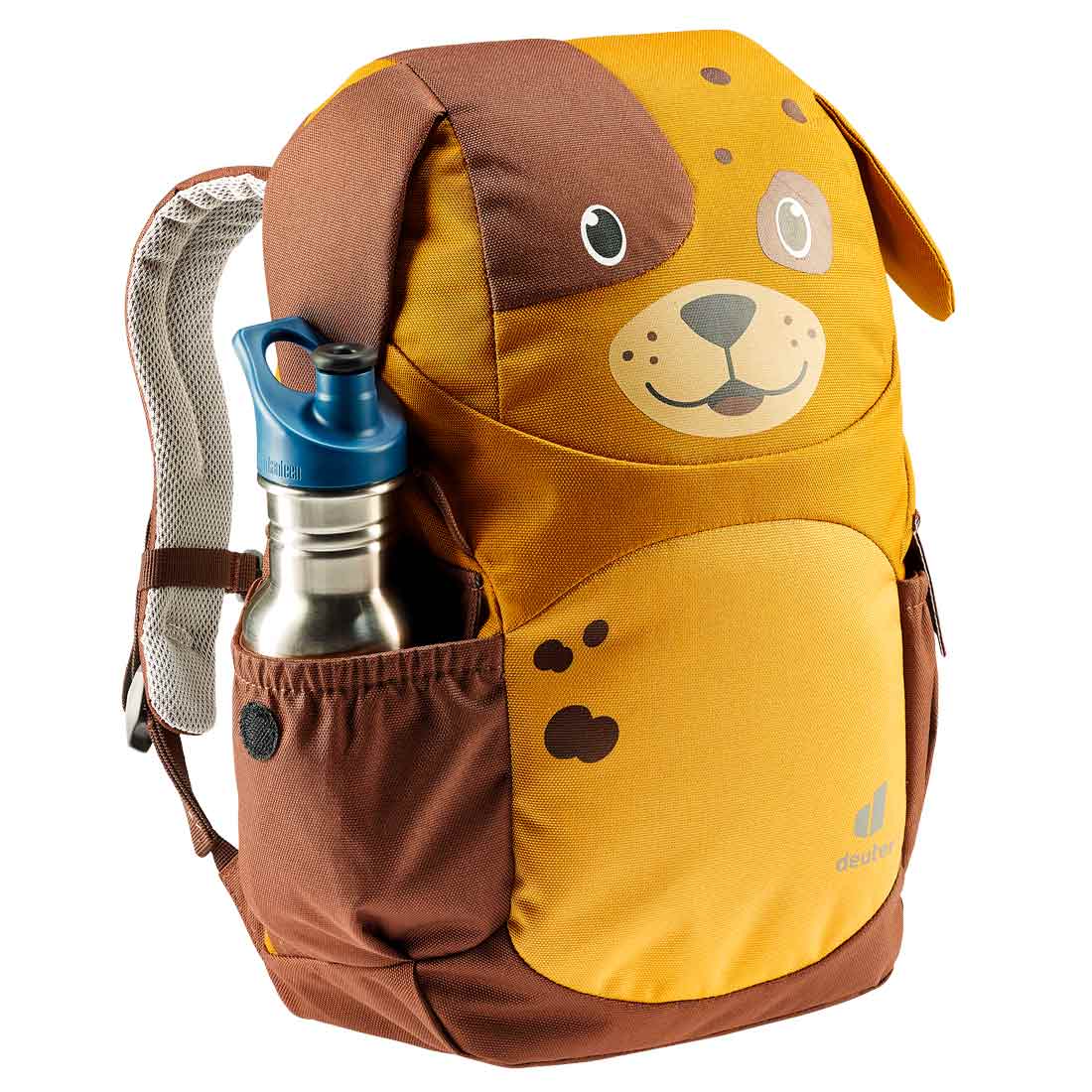 Deuter Kikki to plecak zaprojektowany specjalnie dla dzieci w wieku przedszkolnym od 3 roku życia. Zabawne wzornictwo przedstawiające zwierzęta i ciekawa kolorystyka na pewno spodoba się najmłodszym miłośnikom zwierzaków. Miękko wyściełane plecy i anatomiczne szelki zostały przystosowane do budowy dzieci. Komora główna zabezpieczona zamkiem błyskawicznym ma pojemność 8 litrów, co zapewnia odpowiednią ilość miejsca na wyposażenie niezbędne w przedszkolu, krótkiej wycieczce czy wyjściu na basen. W jej wnętrzu umieszczono osobną „mokrą” kieszeń. Końcówki zamków suwaka posiadają dodatkowe pętelki, tak aby otwieranie i zamykanie nie sprawiało problemów. Dwie boczne kieszonki idealnie nadają się na bidon lub inne drobne akcesoria. Umieszczone na froncie plecaka logo marki Deuter jest jednocześnie elementem odblaskowym, dodatkowe odblaski umieszczono na szelkach uprzęży, takie rozwiązanie poprawiają widoczność po zmroku, lub w trudnych warunkach atmosferycznych.