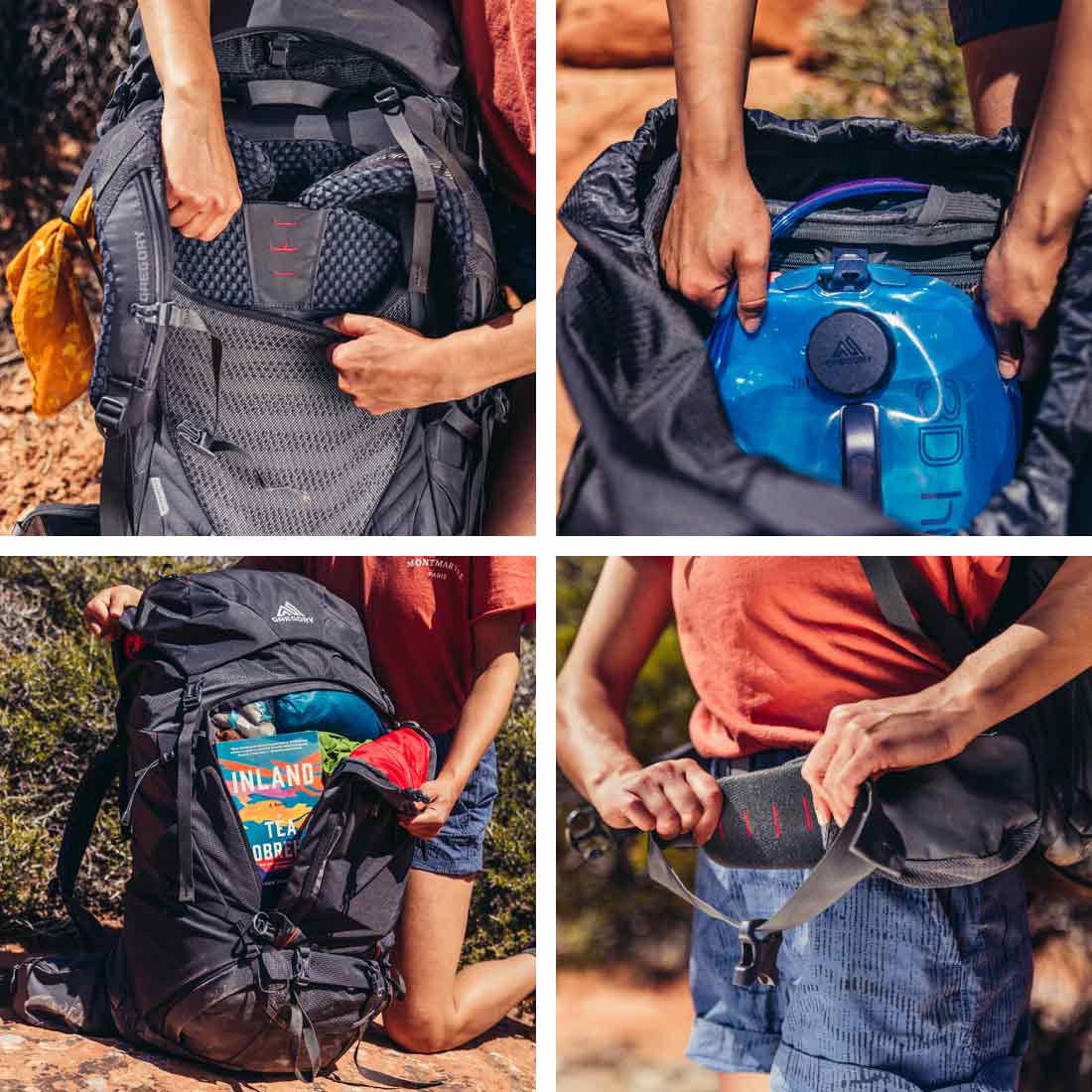 Gregory Deva 80 Pro posiada dwie komory z możliwością ich połączenia, oraz trzy sposoby dostępu do spakowanego w plecaku wyposażenia. Pojemna komora górna wyposażona została w osobną kieszeń na bukłak, dostęp do jej wnętrza może być realizowany na dwa sposoby, klasycznie od góry poprzez klapę lub dodatkowe, zabezpieczone suwakiem dojście umieszczone od frontu plecaka. Dolna komora zamykana zamkiem błyskawicznym jest odpowiedniej wielkości aby pomieścić śpiwór. Liczne kieszenie i punkty służące do troczenia umożliwiają odpowiednie odpowiednie rozmieszczenie akcesoriów. Od frontu plecak znajdują się obszerna mokra kieszeń i dwie pojemne kieszenie zabezpieczone zamkami błyskawicznymi. Po bokach umieszczono z jednej strony kieszeń elastyczną, a z drugiej chowany uchwyt na bidon i dwie szlufki do troczenia. Dodatkowe dwie kieszenie na pasie biodrowym zapewniają miejsce na drobne akcesoria podręczne. Posiada trzy kieszenie w klapie, dwie zewnętrzne i jedną wewnętrzną, w niej umieszczono pokrowiec przeciwdeszczowy. Znajdujące się w dolnej części plecaka paski z klamrami umożliwiają troczenie dodatkowych akcesoriów, np. karimaty. Plecak wyposażono w pętle do mocowania czekanów i kijów trekkingowych.