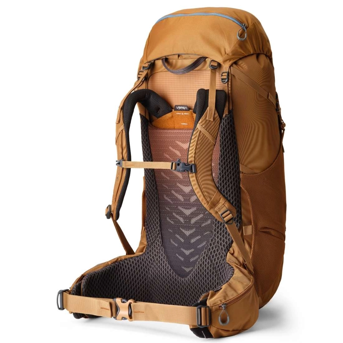 Gregory Stout 70 wyposażono w regulowany system nośny VERSA FIT. Aby poprawić komfort użytkownikom i zapewnić odpowiednią wentylację, panel tylny, szelki uprzęży i pas biodrowy wykonano z perforowanej pianki pokrytej miękką tkaniną typu mesh. Usztywnienie systemu stanowią rama aluminiowa i wkładka HDPE, które w połączeniu z pasem biodrowym Active Wrap zapewnia stabilną pozycję plecaka i odpowiednie rozłożenie obciążenia, przenosząc je na lędźwiowy odcinek kręgosłupa. VERSA FIT posiada płynną regulację długości pleców (w zakresie od 40,6 do 55,9 cm) i pasa biodrowego, takie rozwiązanie umożliwia optymalne dopasowanie zarówno do wzrostu, jak i sylwetki użytkownika.