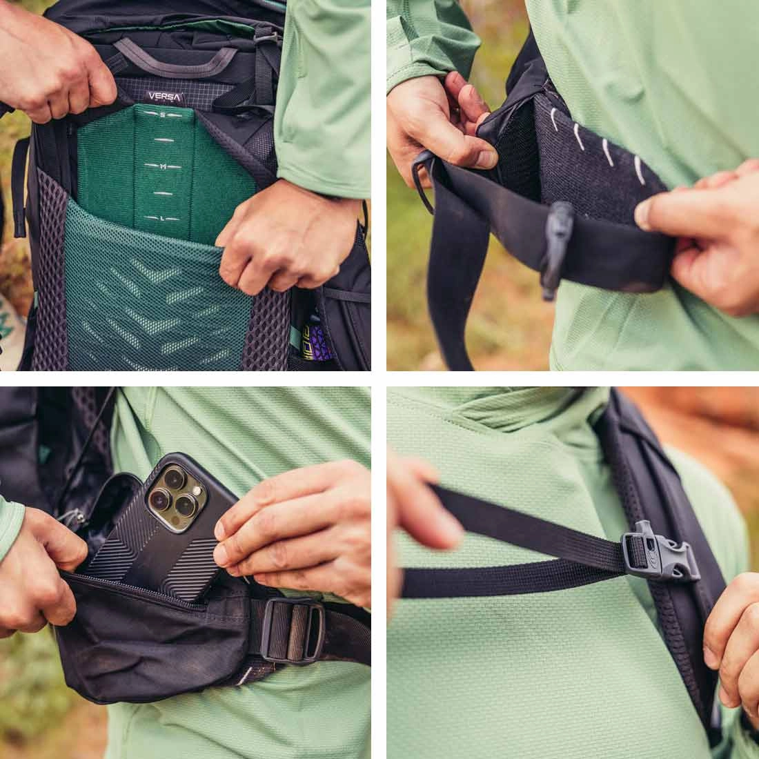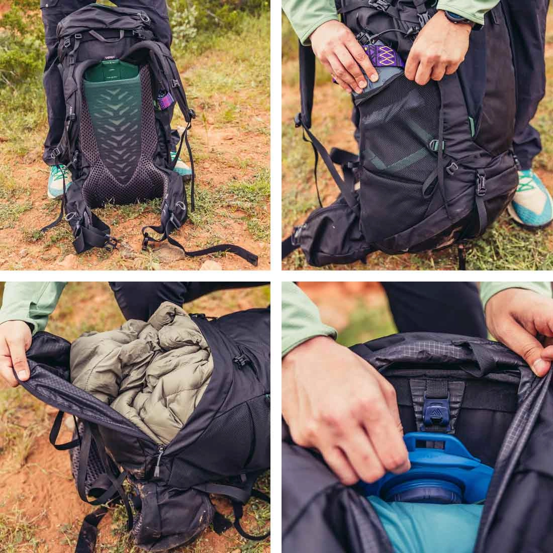 Gregory Stout 70 posiada dwukomorową konstrukcję z trzema sposobami dostępu, rozwiązanie takie zapewnia łatwy dostęp do poszczególnych elementów przenoszonego wyposażenia, ułatwia pakowanie i pomaga zachować ład w bagażu. Do zawartości górnej komory można się dostać od góry poprzez klapę i od frontu przez szerokie dojście zabezpieczone zamkiem błyskawicznym, w jej wnętrzu umieszczono przegrodę na system H2O. Dolna komora zamykana na suwak oferuje odpowiednią ilość miejsca na np. śpiwór. Obie komory można połączyć i w ten sposób otrzymać jedną dużą przestrzeń załadunkową. Umieszczona od frontu kieszeń ze wstawkami z elastycznego materiału spokojnie pomieści kask lub kurtkę. Na mniejsze akcesoria, które zawsze powinny być pod ręką przewidziano dwie kieszenie na klapie i dwie kieszonki umieszczone na pasie biodrowym. Boczne kieszenie siatkowe bezproblemowo pomieszczą dodatkowe butelki z wodą. Boczne pasy kompresyjne pozwalają na dostosowanie objętości plecaka do przenoszonego w nim wyposażenia. Na wyposażeniu znajduje się oczywiście pokrowiec przeciwdeszczowy i troki umożliwiające przypięcie kijków trekkingowych i czekana.