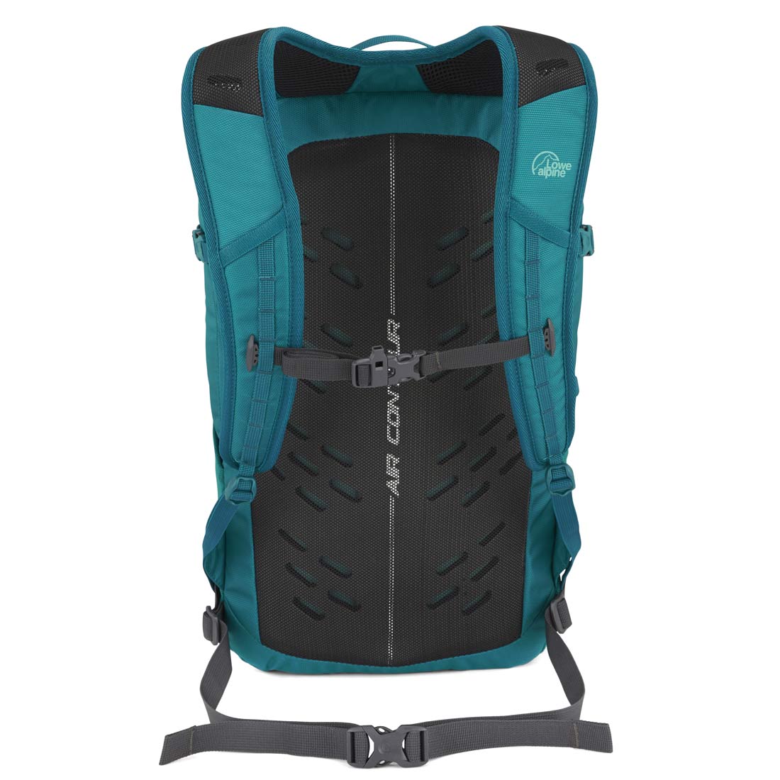 Lowe Alpine Edge 22 wyposażono w dostosowany specjalnie do plecaków miejskich system nośny Air Contour™. Tylny panel składa się z elementów wykonanych z perforowanej pianki pokrytej siatkowym materiałem. Anatomiczne szelki naramienne z materiału Airmesh zapewniają dobre dopasowanie i komfort. Odpinany pasek biodrowy z taśmy zapewniaj dobrą stabilizację plecaka podczas jazdy na rowerze, czy szybszego marszu lub biegu. Pasek piersiowy posiada regulację i gwizdek.