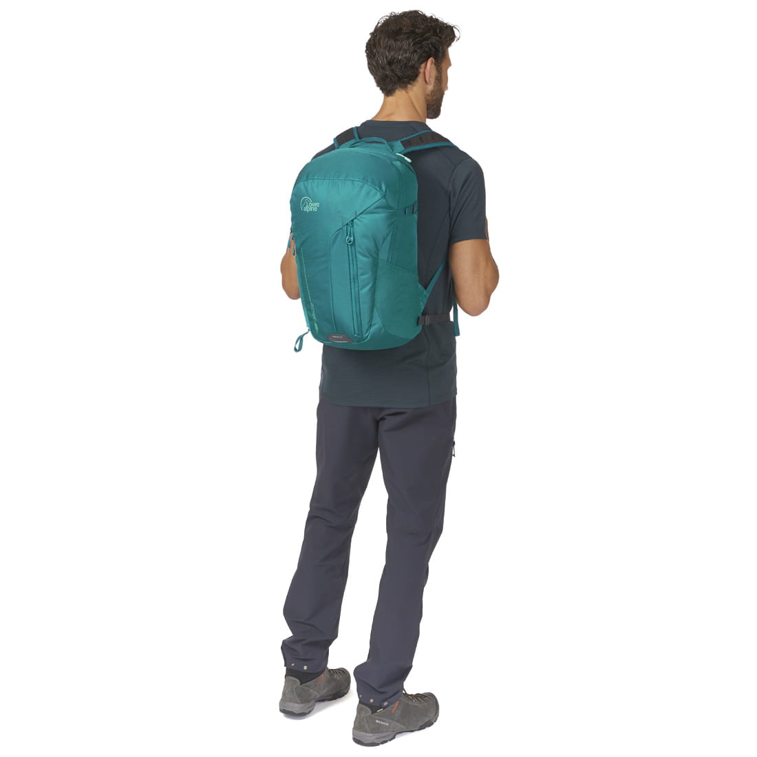 Lowe Alpine Edge 22 dzięki swej wszechstronności świetnie sprawdzi się zarówno jako plecak miejski, szkolny, rowerowy, czy turystyczny na jednodniowe wypady w teren oraz na siłownie czy basen. Ten lekki plecak umożliwia zarówno przyczepienie kijków trekingowych i bukłaka jak i transport laptopa, łącząc w sobie zalety plecaków miejskich i turystycznych. Plecak wykonany jest z materiałów wolnych od szkodliwych dla zdrowia i środowiska związków PFC. Do jego produkcji użyto lekkiego i wytrzymałego 420D Dobby zabezpieczonego powłoką HydroShield poprawiającą wodoodporność i zmniejszającą podatność na zabrudzenia.