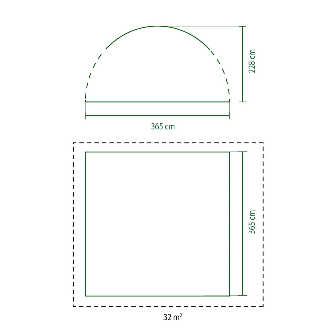 - Powierzchnia podłogi: 3,65 x 3,65 m (13,32m2)