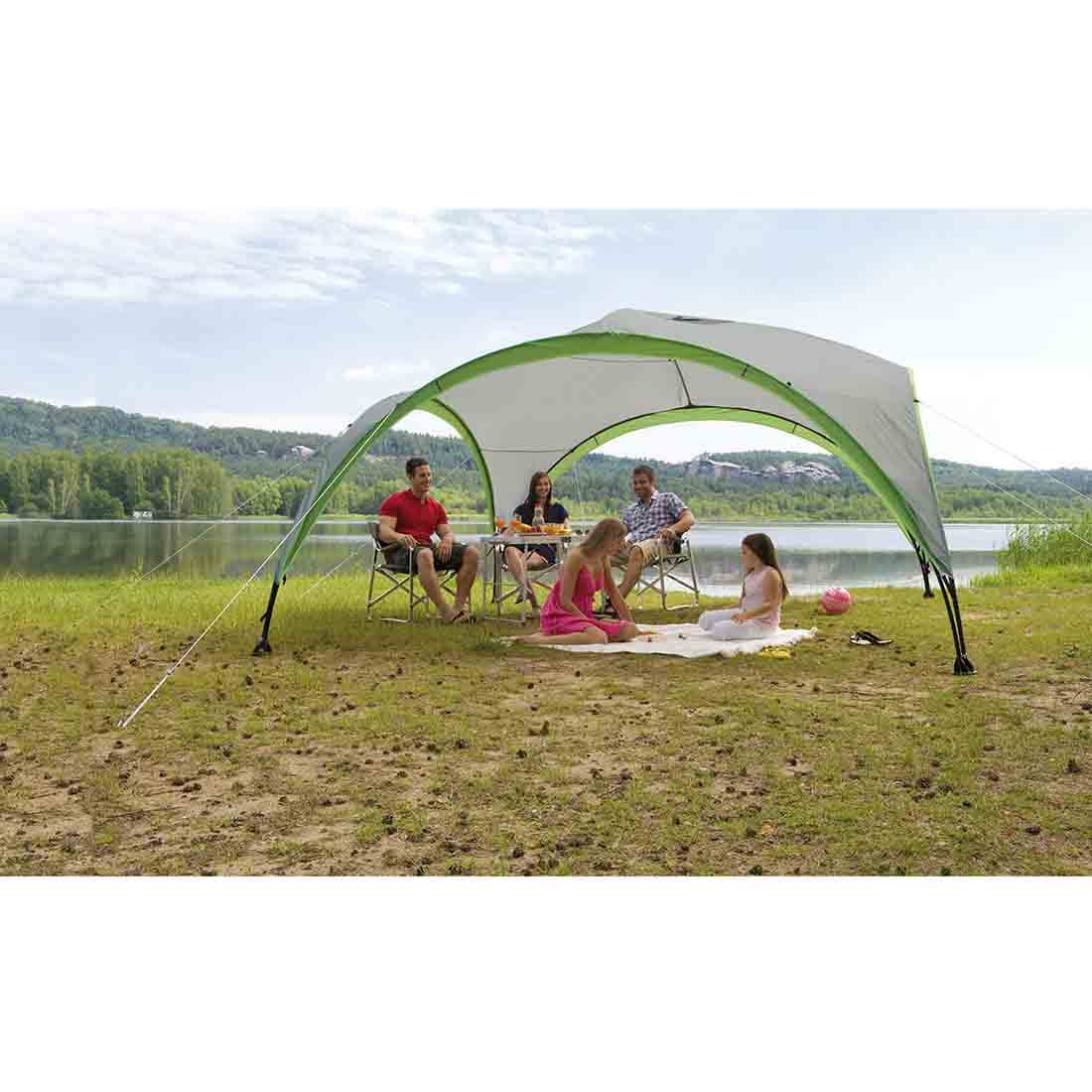 Jest wysokiej jakości wiata namiotowa amerykańskie marki Coleman. Idealnie ochroni przed słońcem. Jej solidna konstrukcja i najwyższej jakości materiały, wytrzymają mocno wietrzną i deszczową pogodę. zapewniając komfort podczas eventów lub rodzinnych spotkań czy picknick'ów ale również podczas aktywności i ćwiczeń fizycznych. Wyposażona została w technologie jakie jak: Coleman WeatherTec™, UV Guard™ oraz Fire Retardant.